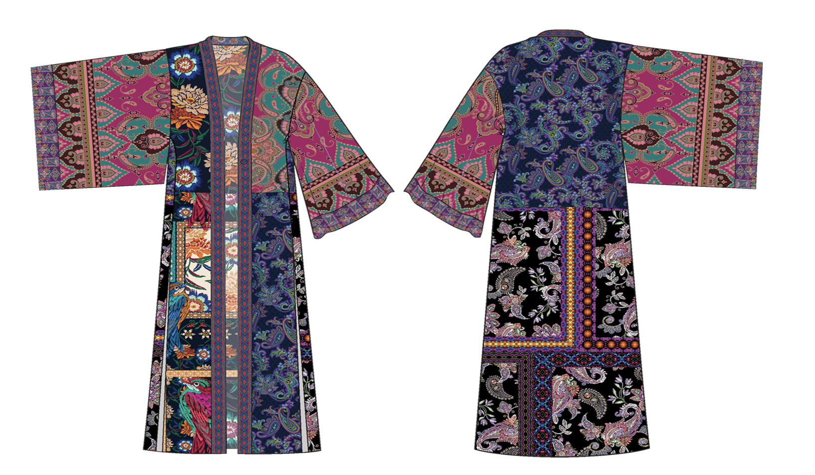 aziza long kimono (reversible)JWC // FALL 2025artwork files created in Adobe Photoshop aziza long kimono - argus patchwork reversible side ← AZIZA LONG KIMONO - ARGUS PATCHWORK - self mm (mini-marker) / follow placement aziza long kimono - argus patchwork - print 44” five different artworks placed on each self A and self btwo different embroidered trims used on each self …continued fall 2025 kimonos levi patchwork fall 2025 trims for aziza long kimonos - prepare for dye embroidery on silk habutai 8mm magaly patchwork padma patchwork →